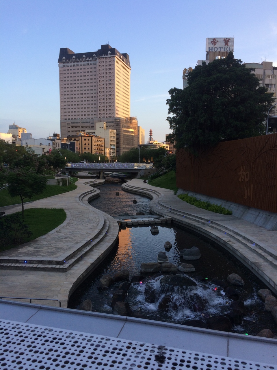 台中の宮原眼科の向かい側を流れている川で、川の両サイドがちゃんと整備されていました。銅像や、アート作品みたいなものも置かれていました。日が沈んだあとは、イルミネーションがつくところがあり、新しい街の景観でした。