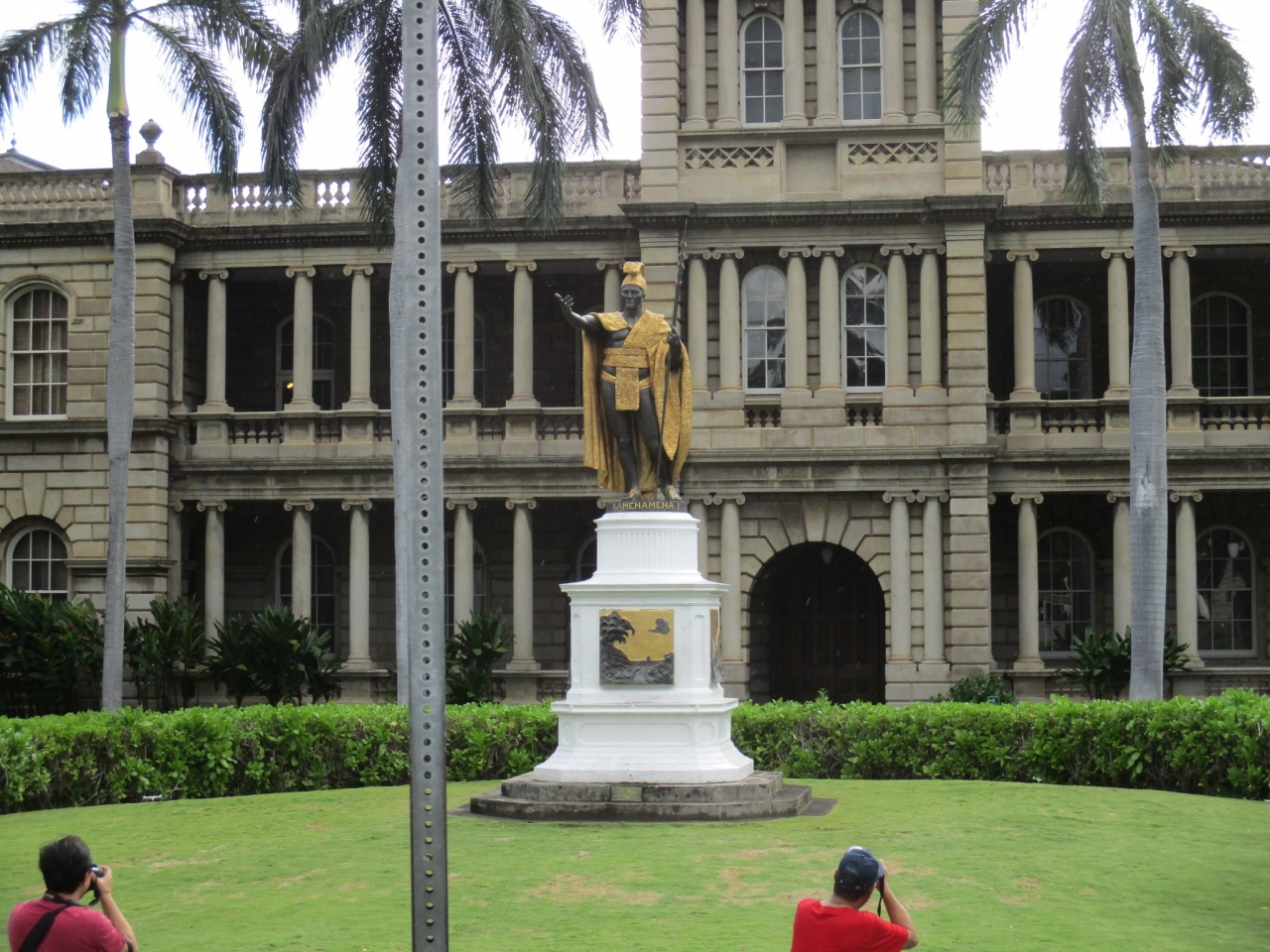 ワイキキに滞在しているときに、HISのトロリーのダウンタウンラインに乗車して、カメハメハ大王像の後ろにあるアリイオラニ ハレ (ハワイ州最高裁判所)も見学しました。