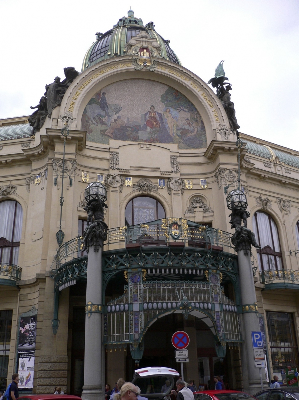 アールヌーボーの建築様式で世界的に有名なプラハの市民会館。閉館時刻少し前に到着して、何とか間に合ったと思ったのも束の間、この日は工事のため閉館していました。