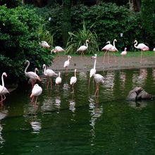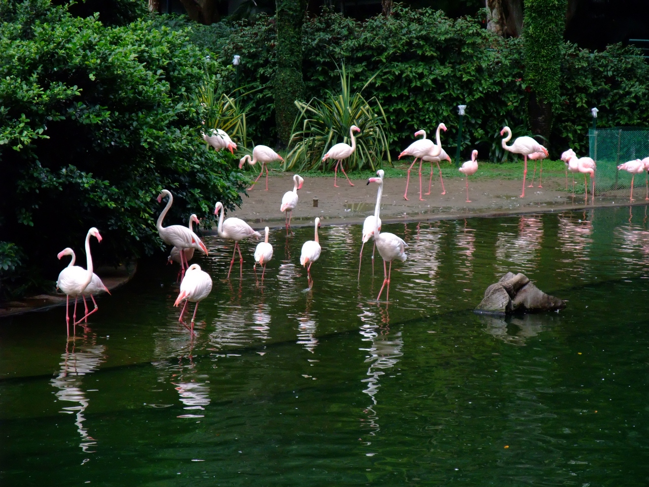 尖沙咀にある九龍公園の中に、フラミンゴがたくさんいる池がありました。周囲にはほかにも鳥がいるゲージがあって、まさに百鳥苑です。