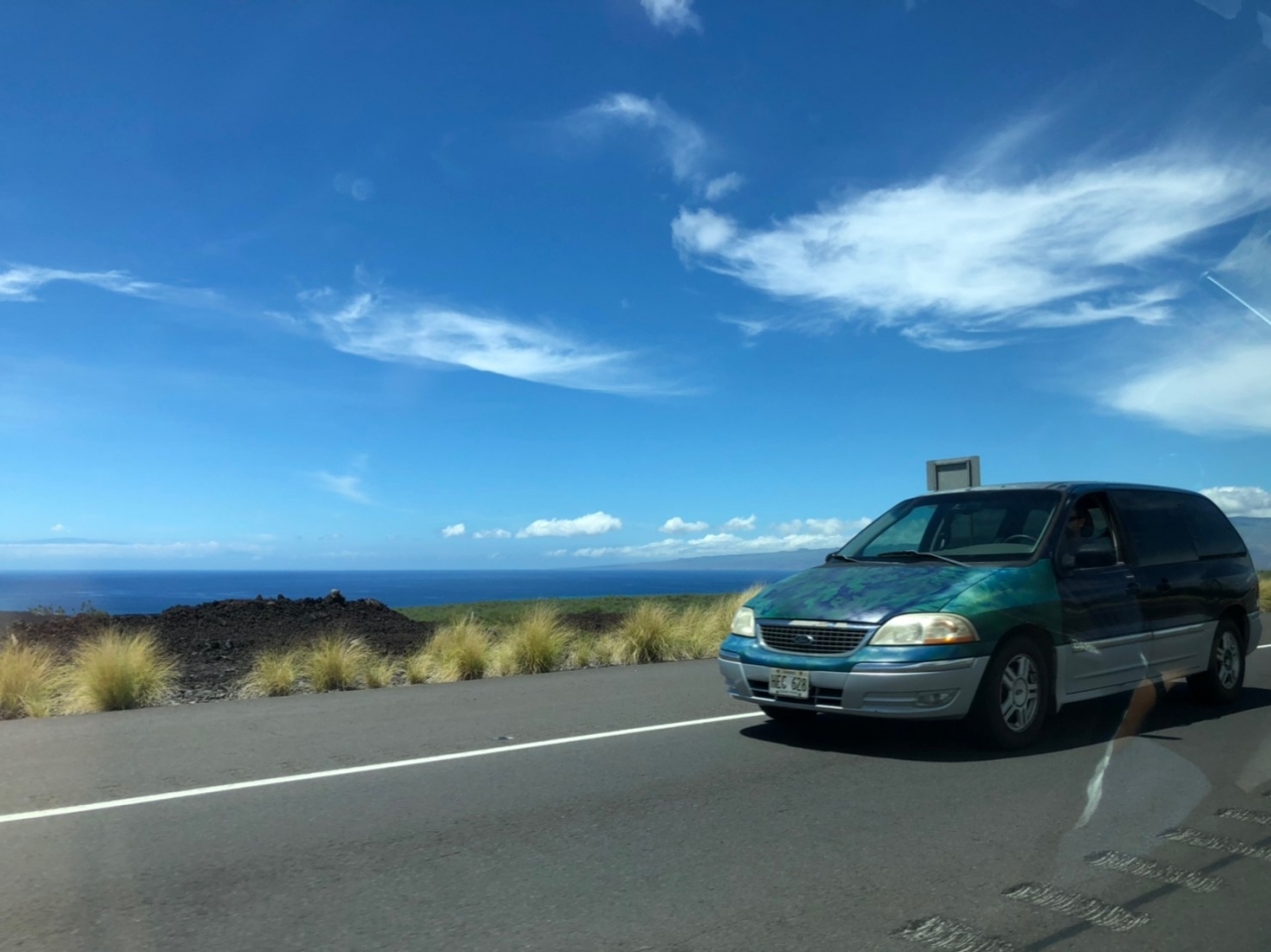 ワイコロア地区にも30分位でとても広々とした溶岩台地やハワイ島の海岸線遠くにはマウイ島を見れるとても景観の良いハイウエイです。ワイコロアに向かう途中には駐車スペースのあるビューポイントがあり溶岩台地と太平洋をバックにして撮影する人々も多く見かけます。ハワイ島で一番行き交う車の多い道路と言ってもいいです。