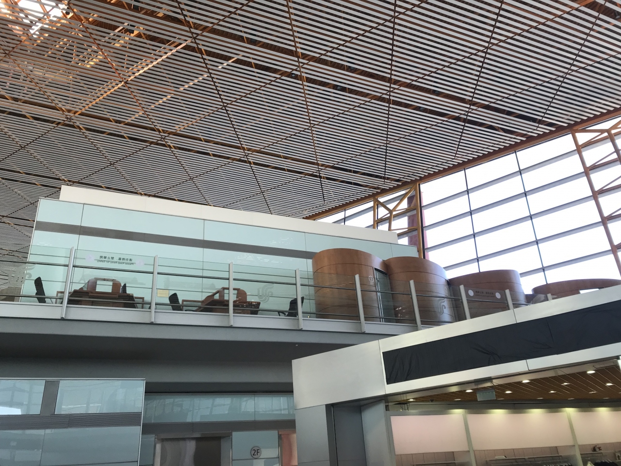 と思うけど、天井は空いてるので、明るいし、空港の雑音は上から入ってくる…