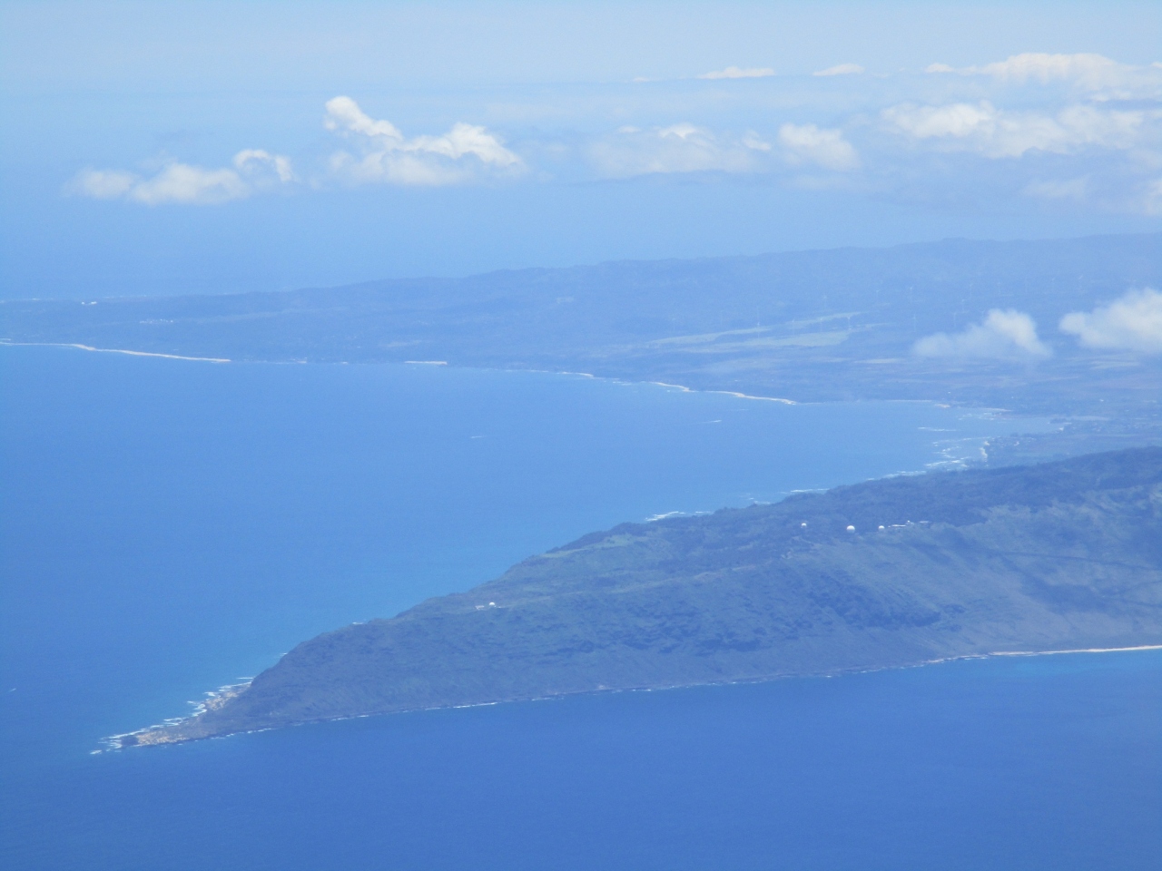 オアフ島を訪れる直前に、機上から眺められるオアフ島最西端のワイアナエ山脈のふもとにあるカエナ ポイント州立公園(ヨコハマ(ヨーコハマ)ビーチ)です。