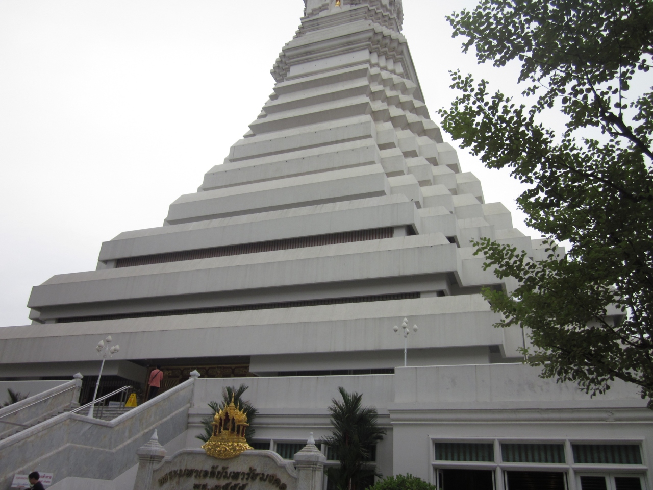 ワットパークナムは、5階建てになっていて、最上階に、ネット、テレビでも見る仏塔がありました。1階から4階にも仏像が沢山あって、見所が多かったです。白い外観の大きな寺院でした。