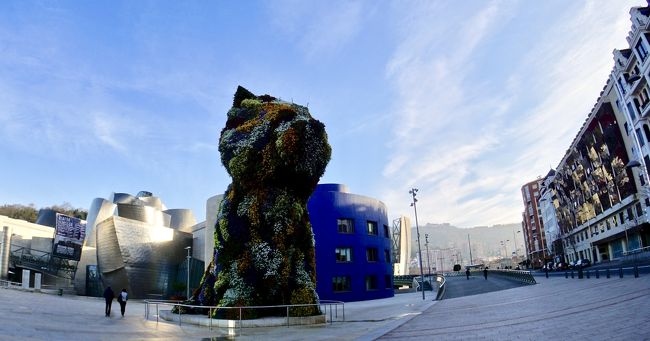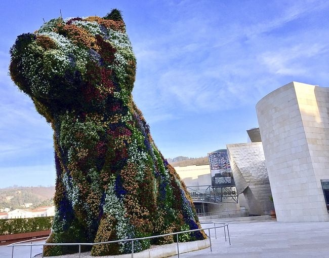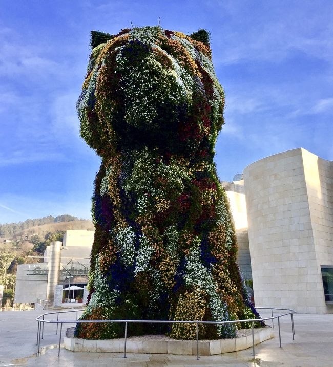 「ビルバオ・グッゲン・ハイム美術館」の裏の広場に佇む、明らかに住民に愛されているお花で埋め尽くされた大きな「犬のハリボテ」(その名も「パピー」/ビルバオ/バスク地方/スペイン)