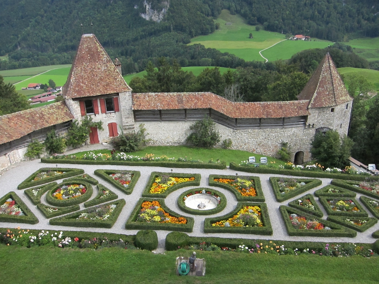 グリュエールの村を抜けた高台にあるお城で、佇まいはまさしくお城、と言う感じです。
