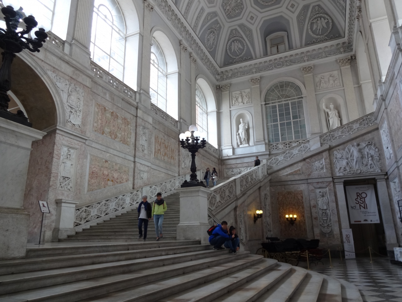 ナポリとシチリアを統括していたブルボン家のバロック式の王宮。プレビシート広場前にあり、現在は王宮歴史的住居博物館と図書館になっていた。まず目に入るのが、見事な装飾の大理石の階段。また、大理石の床と美しい装飾が施された天井などが華やかだった。王家の調度品や17~18世紀の絵画などから、かつてナポリ王国の歴史を十分に感じられた。