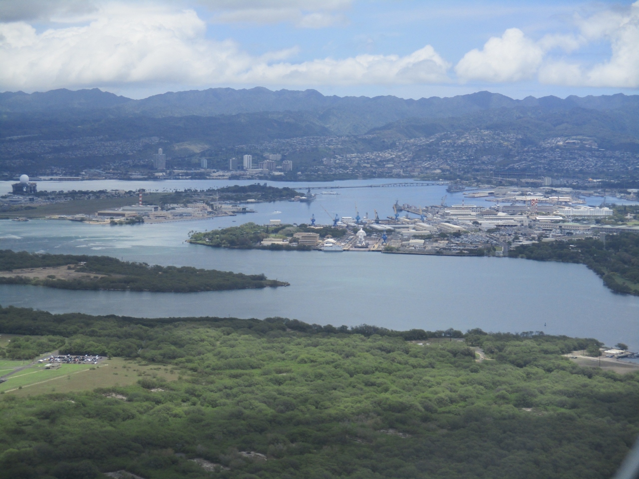 ハワイを訪れた時にダニエル・K・イノウエ国際空港(ホノルル国際空港)に着陸する前に、機上からパールハーバーを見ることができました。