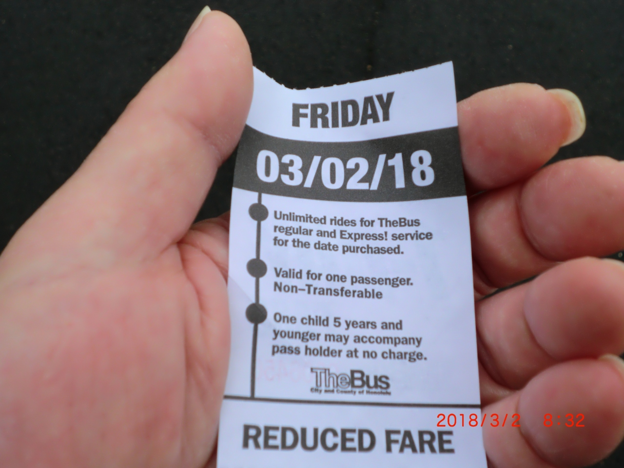 朝早くダイヤモンドヘッドに行く時や真珠湾に行く時乗りました。ワイキキにはバス停が多くすぐに停車しますが、ワイキキを離れるとバス停は少なくなります。問題は降りる時のバス停名です、日本のような簡単ではなく、WAYとST=交差点がバス停名になってます。例 「Kuhio Ave and Walina St」「Ala Moana Bl + Richards St」「Kamehameha Hwy + Arizona Memorial Pl 」 などです。バスにバス停が表示されますがリクエストがあると消えるので注意が必要です。運転手に降りる場所を伝えておくのが一番。