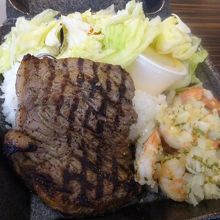 ステーキやシーフードが美味しいイメージがありますなが、今まで食べた事がなく、初めてステーキとガーリックシュリンプのプレートを頼みました。