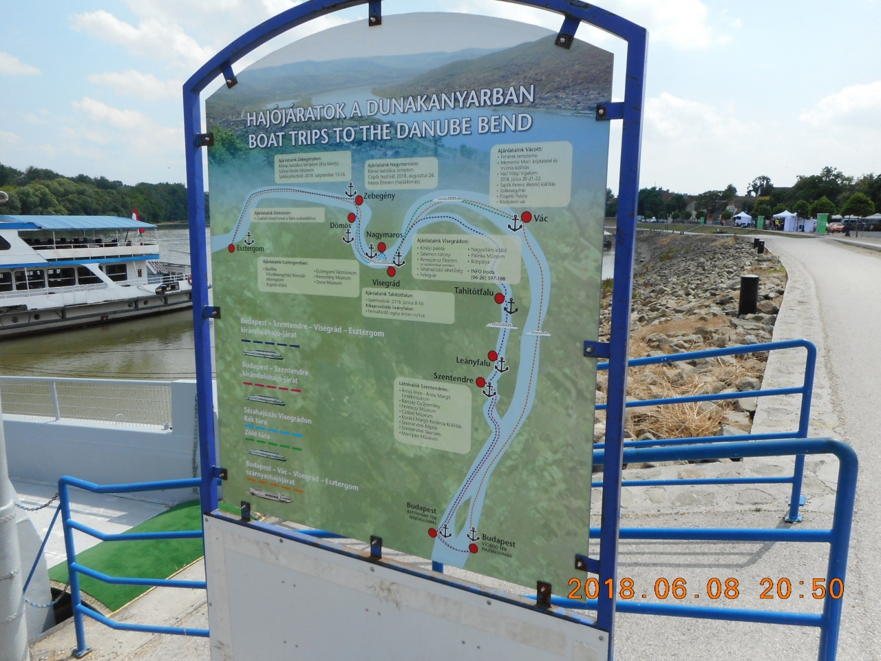 センテンドレ駅から北に15分の中央広場から東に数分でドナウ川沿いに出ました。ドゥナコルゾー通りはドナウ川沿いに南北に長く伸びていたので北の終端は確認できませんでした。南の端はセンテンドレ駅の東側を走っている広い道路に繋がっていました。主に散策を楽しんだのは中央広場の東側のドナウ川沿いから北に向かって歩いた所にあるマハルト・パスナヴェと言う船が停泊している場所辺りまででした。