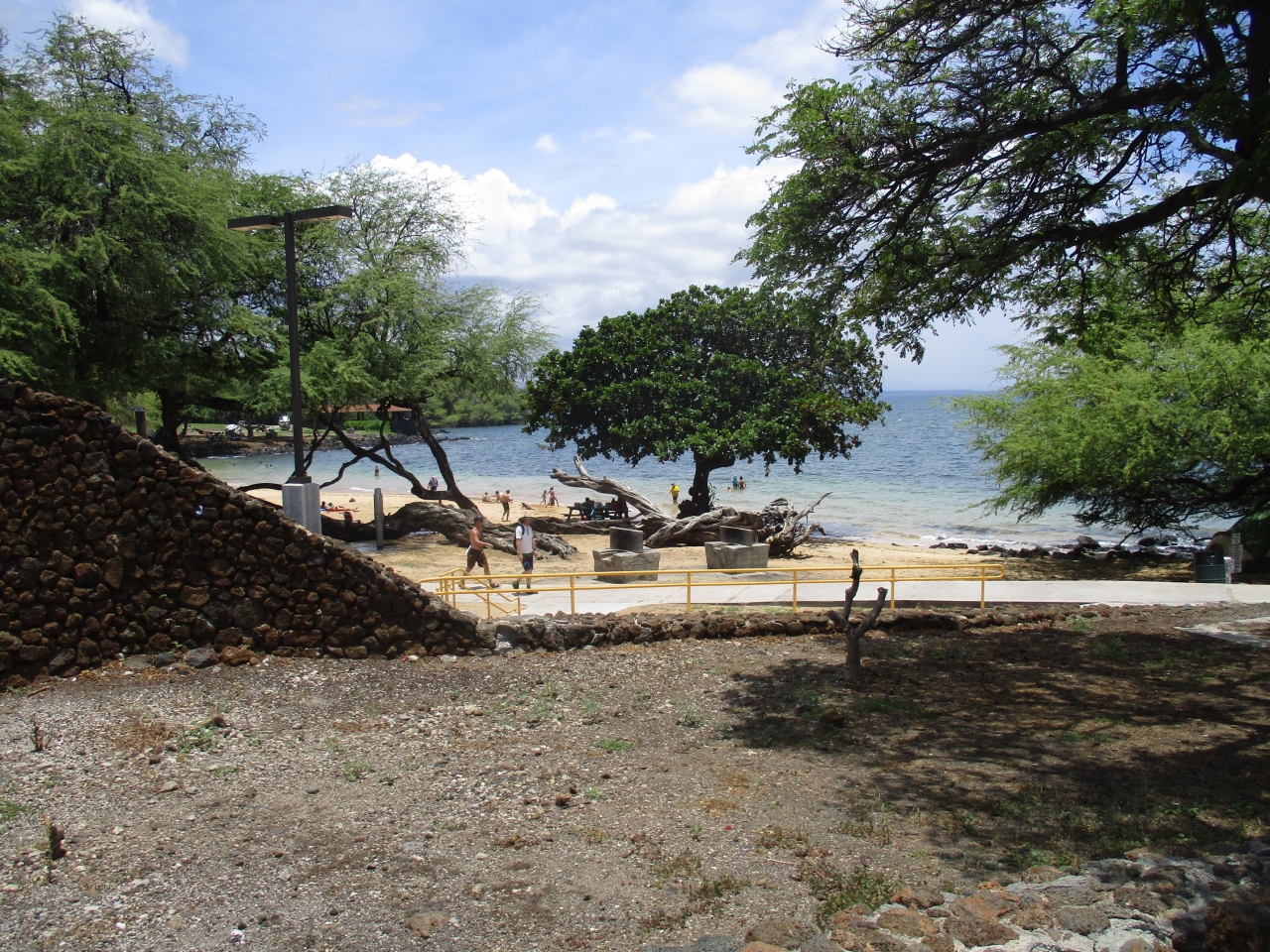 カワイハエの近くにある、コハラコーストの美しいビーチで、芝生や大きな木も多く、木陰でのんびり過ごすことができます。