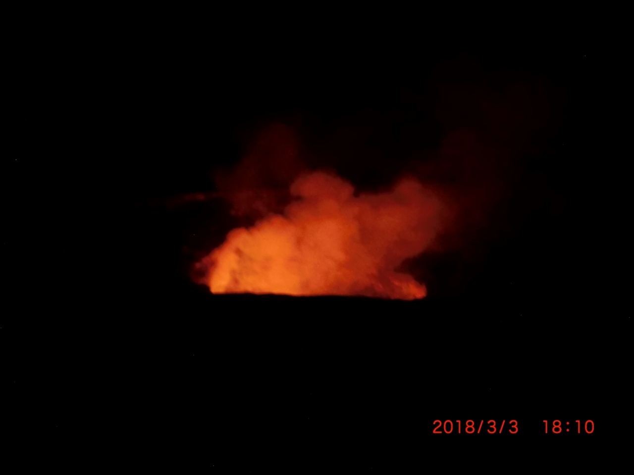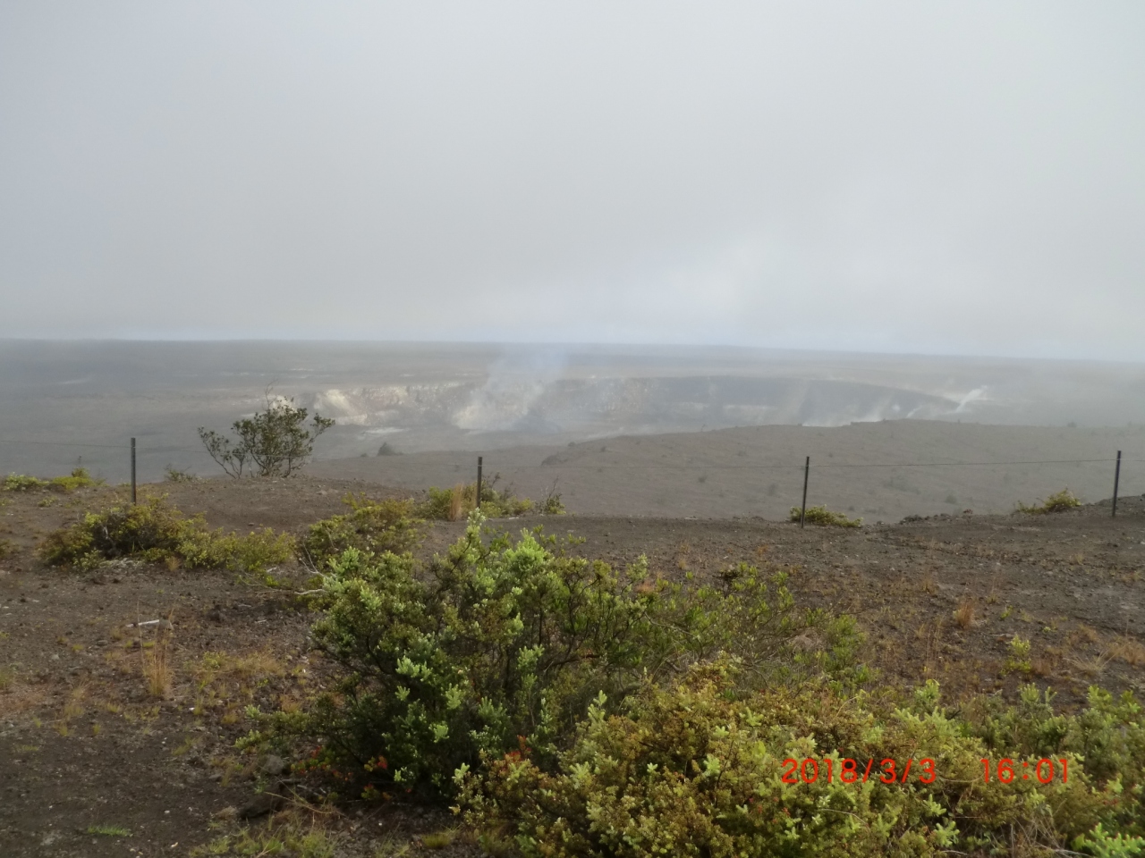 旅行会社C・T社のハワイ島巡りで行きました。カイルアコナからバスで3時間位かかりました。夕方着いて、まだ明るいうちに火口を見て(煙と火口)、夕食を食べに移動して、食後また火口を見に行きました。今度は火口が赤くなっているのが見えました。ガイドさんが言うには「昼間見て、夜も見ないと来た意味が無い」と言ってました。