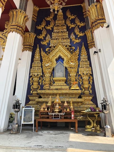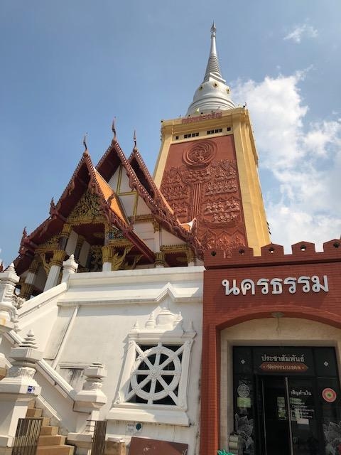 BTSプナウィティ駅を進行方向に向かって左側におり、少し戻りSOI101を右に曲がり約10分ぐらい歩くとWAT DHAMMAMONGKOLのサインがあります。そこを右に曲がり更に歩くとお寺があります。お寺にはりっぱな仏塔があります。このお寺は瞑想で有名で多くのタイ人の方が修行をされていました。