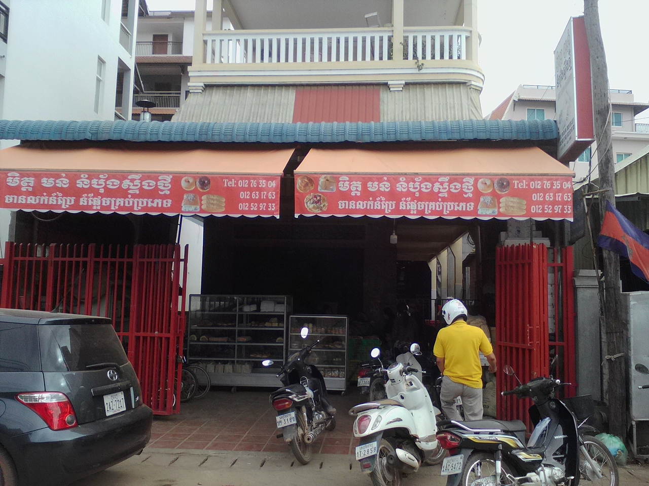 ベーカリーと呼ぶより“町のパン屋さん”が似合う店です。場所は地図のとうり。人気なのはシンプルなバケット。奥にある工房で焼かれた焼き立てを買うために待っている人がいるほどです。小ぶりなものなら1個300リエルです。他にはドーナツやデニッシュ、蒸しパン、惣菜パンもどき、ケーキ風、食パンなんかもあります。値段表示がないのでいちいち聞くのが面倒くさいですが…。