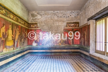 サレルノから鉄道を使って日帰りでポンペイ遺跡へ行きました。すべてを見つくすつもりで、丸一日遺跡を巡りました。ここは遺跡内の他の見どころから少し離れています。その分観光客が少ないのでゆっくり見学出来ました。