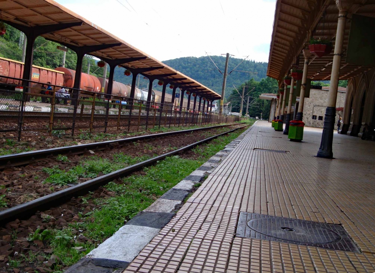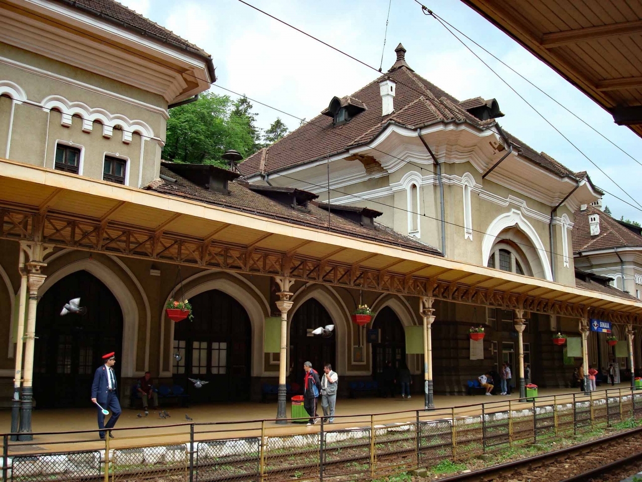 ペレシュ城を訪れるため、首都のブカレストから列車を利用してこの駅に到着しました。ブカレストから100km以上の距離があるので、2時間半ほどかかりました。駅舎やプラットホームはクラシックな感じで、山中の駅にしては立派な施設だと思いました。駅前で数台のタクシーが客待ちをしていました。
