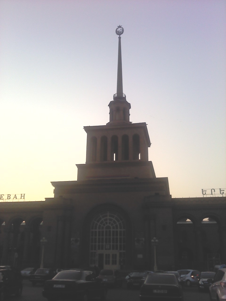 ジョージアのトビリシから国際バスに乗ってエレバンへ。ついts場所がエレバン駅前の広場でした。さすがに人が多いです。駅舎は旧ソ連そのものの建物で、苦かし言ったロシアのベトロザボーツク駅の建物と同じ作りです。地下鉄の駅もあり、みそも多いので、ここを起点に観光しました。