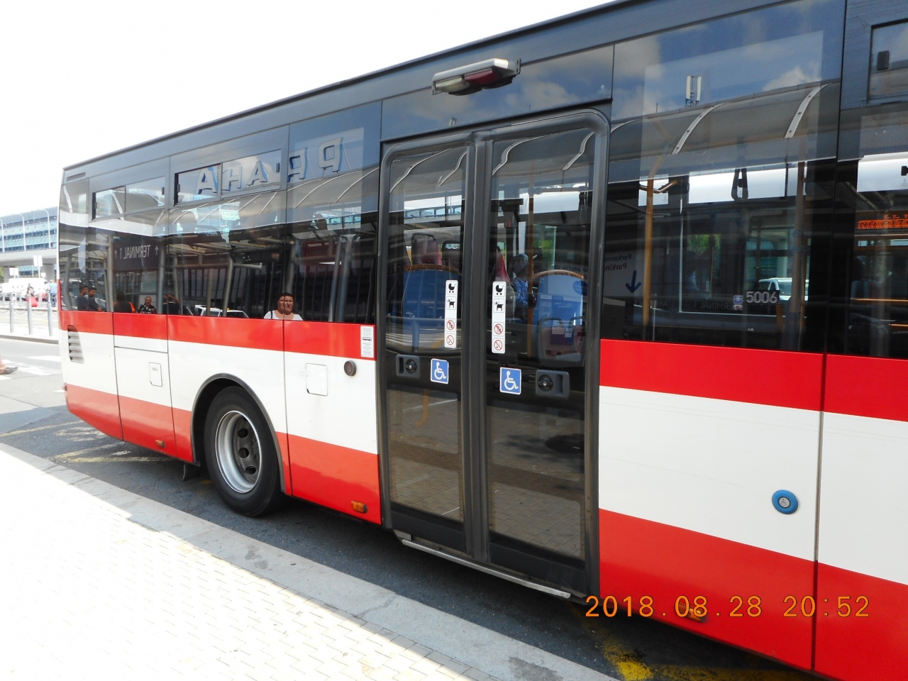 ヴァーツラフ・ハヴェル・プラハ国際空港からAE表示のあるバス乗りで市内行きの赤と白のラインの入った空港バスでプラハ本駅に向かいました。バス乗り場に人が並んでいたので、座れないかと思っていたのですが、心配したほど混んでいなくて、ゆっくり座っていけました。