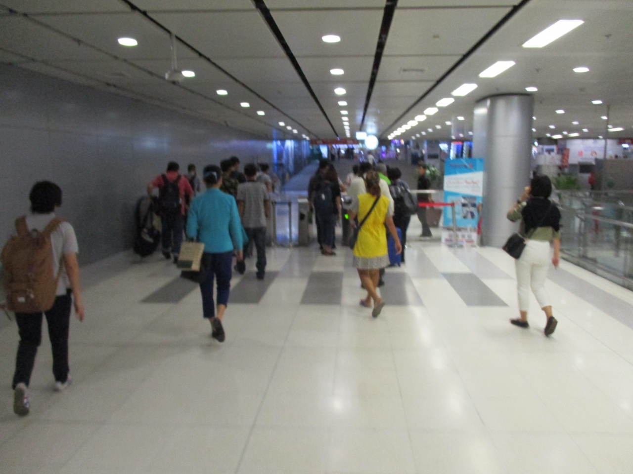 最近、渋滞を回避できることからエアポートレールリンクの利用者が本当に多いように感じます。スワンナプーム空港駅に到着するとこんなに乗っていたのかと驚きます。改札口は1カ所になりますが、乗客の皆さんが譲り合いながら通路を歩き、改札口を通過していました。