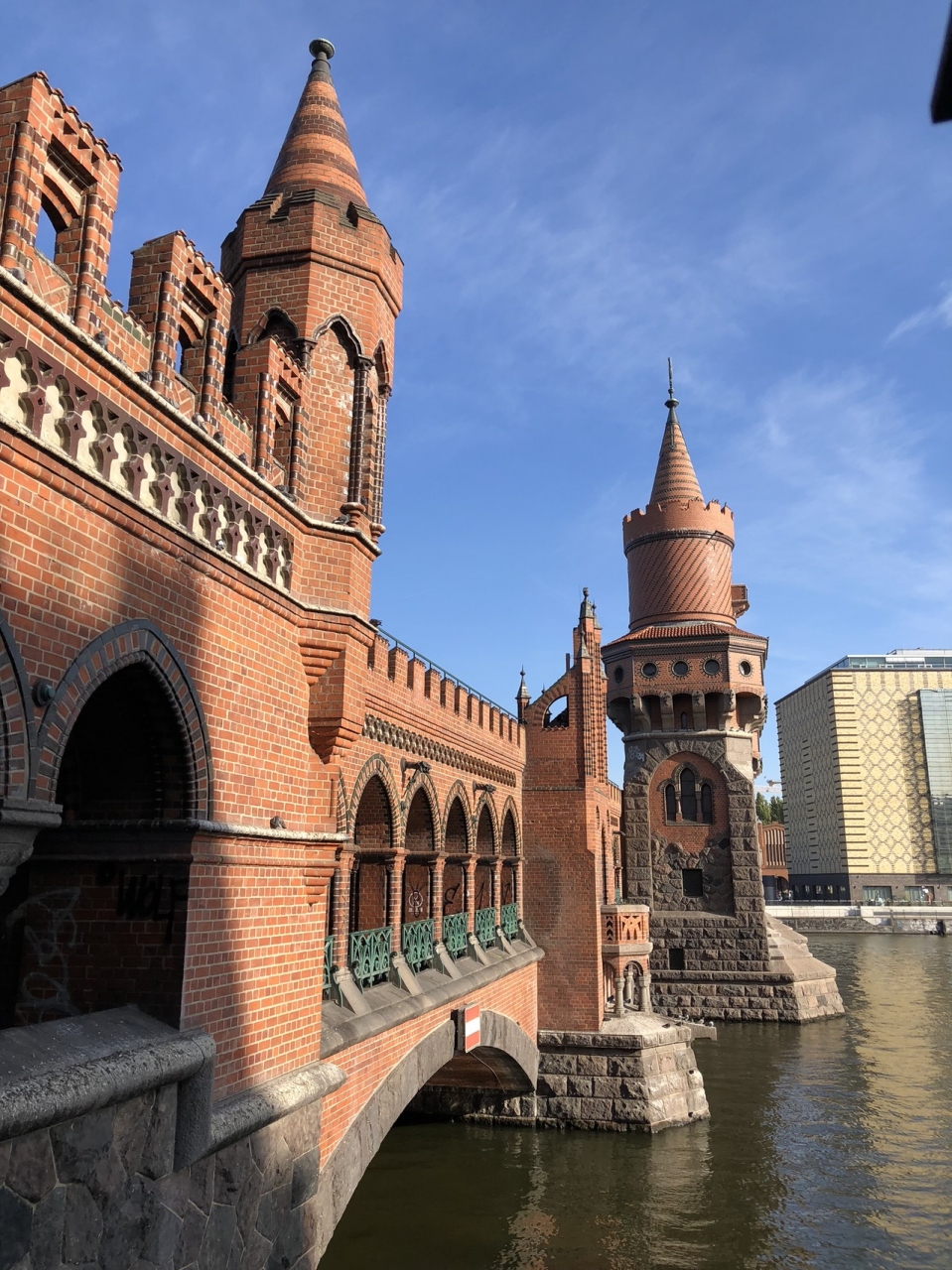 1896年に開通した赤い趣のある橋で、二層構造で城壁のような外観の橋です。冷戦時は橋の北側部分が東西を隔てる壁になっていたようです。イーストサイドギャラリーからシュレジア・ブッシュの境界監視塔に向かう際に渡りました。陽を浴びた橋の姿は格好良かったです。