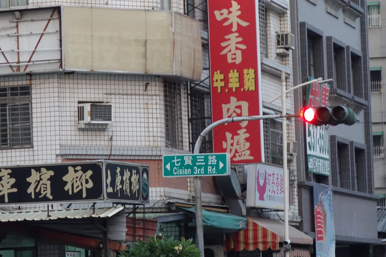 高雄に滞在中、塩テイ地区を散策していた時にこちらの通りを歩きました。歴史博物館あたりから富野路を文武聖殿の方へ進むと七賢三路へ出ました。付近は寺院が幾つもあることに加えて人気の飲食店も点在しており活気ある雰囲気が印象的でした。