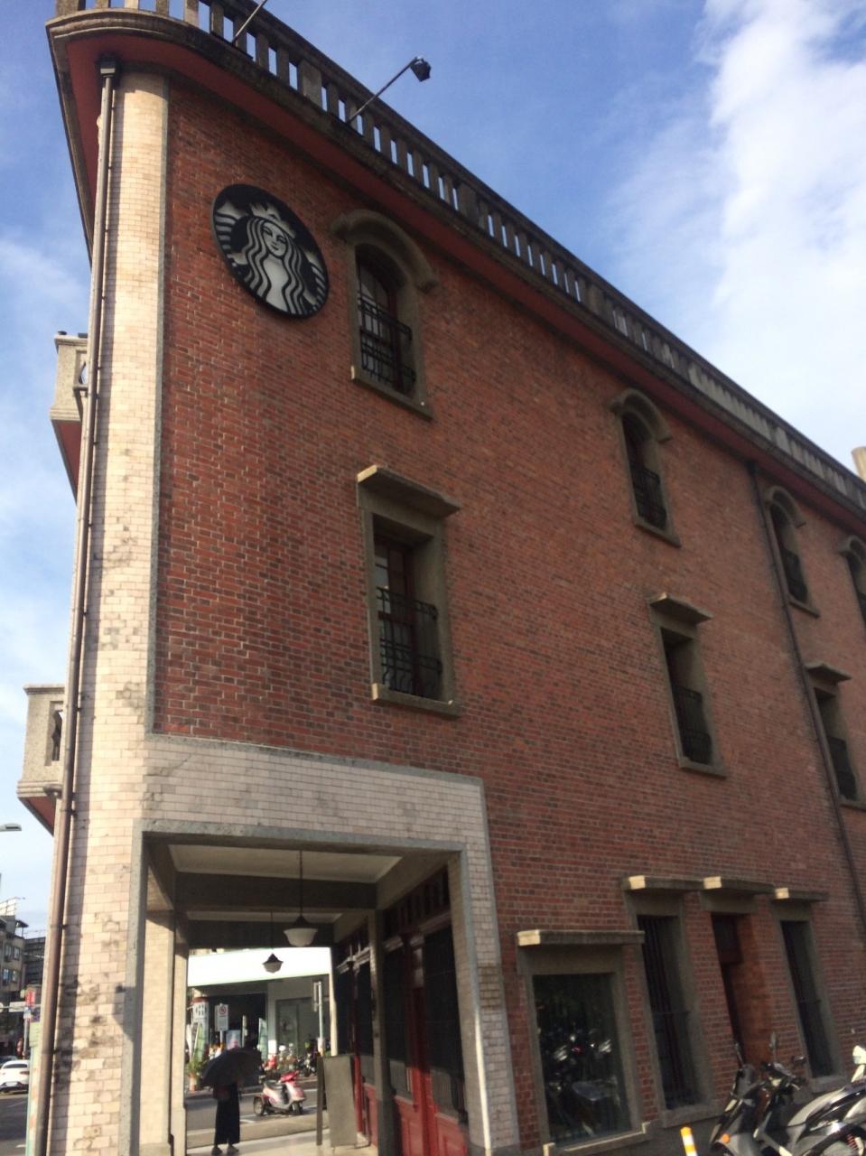 三角形のような珍しい形の建物で、赤煉瓦でレトロな外観がおしゃれでした。3階までありますが、屋上には出れないようになっていました。手を洗うところは、ベランダのようなところにあって、蛇口もおしゃれでした。
