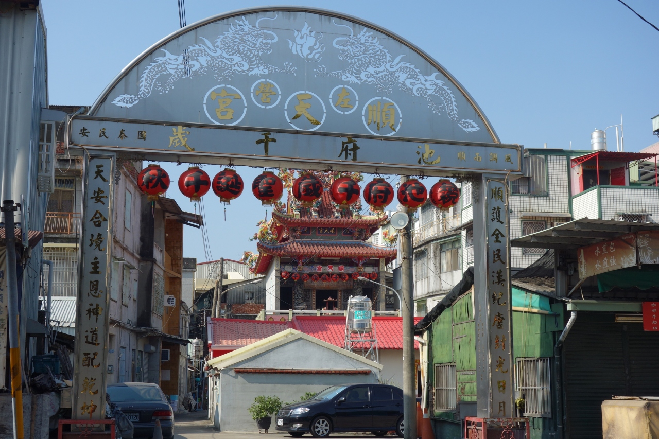 高雄に滞在中こちらの場所を訪れました。人気の観光地蓮池潭沿いを通る蓮潭路沿いに山門があり、奥へ進むと順天宮の拝殿が有りました。大きくはないものの屋根の装飾をはじめ内部の装飾も豪華絢爛で目を惹きました。
