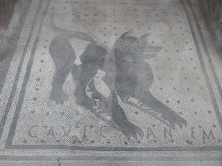 悲劇詩人の家は、入口の床にギリシャ語で「CAVE CANEM」=猛犬注意と書かれたモザイク画があることで有名です。太古の昔から防犯対策として猛犬を飼っていたのでしょうか?