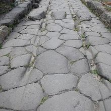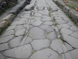 S アッポンディオ通りは遺跡を東西に貫く目抜き通りです。石畳みの道には馬車の轍の跡が残っていて、歴史ロマンに浸りました。