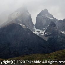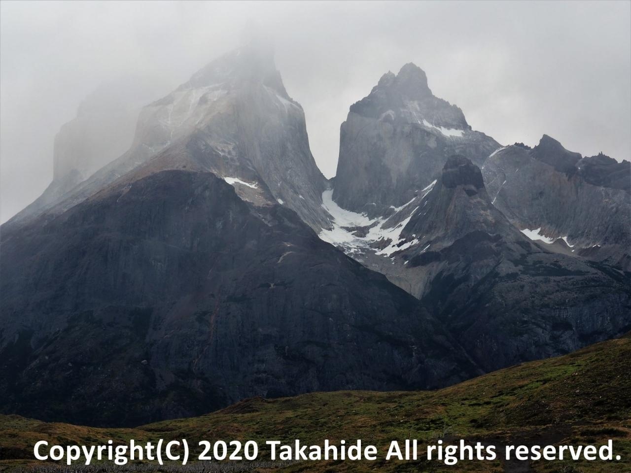 ペオエ湖の端の駐車場から続く遊歩道の終点にあるサルト・グランデ展望台に行くと正面に見れるのがパイネの角(つの)です。