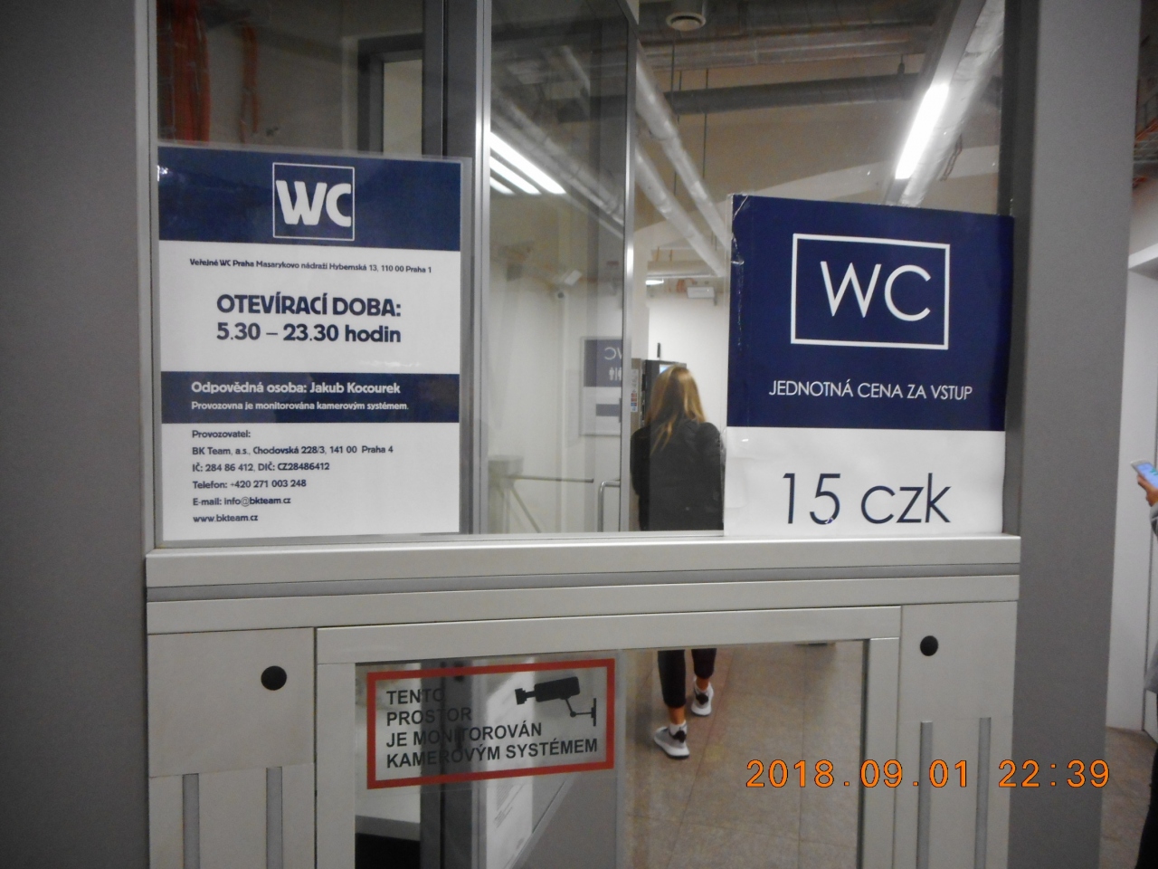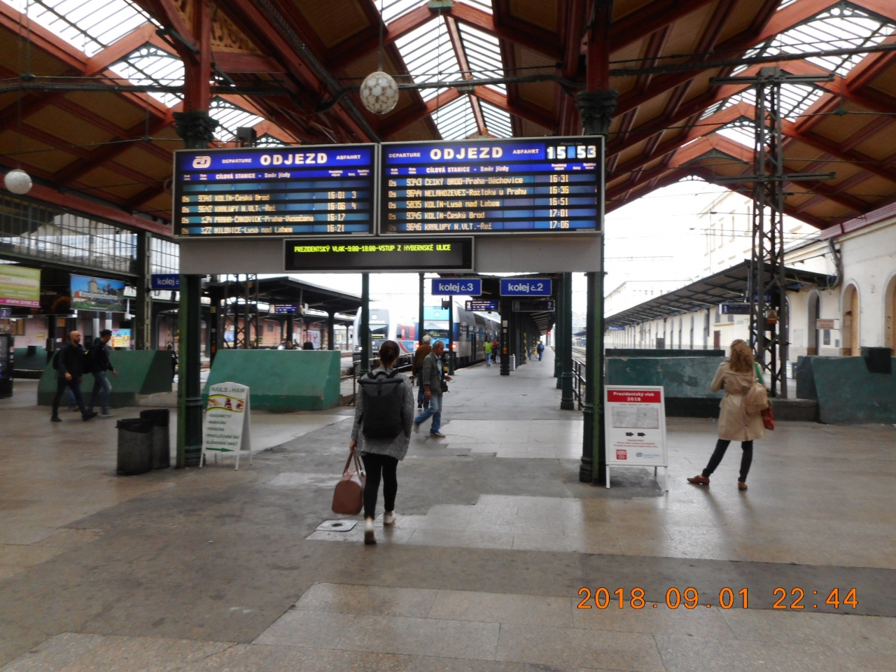 プラハ中央駅からヴルフリツキ公園広場、ジュビリーシナゴーグ、ヘンリーの塔などを見学後、少し北に向かって歩くとプラハマサリク駅に着きました。プラハ中央駅と比べると非常に小ぶりな駅に感じました。構内はかなり空いていて中央駅に比べて非常に静かな駅でした。駅に有料のトイレがあり、60円ちょっとで利用出来ました。