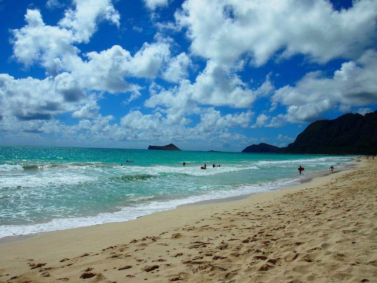 カイルア行きツアーの道中で立ち寄ったのだが、明るいターコイズブルーの海と白い砂浜が続く絶景で、全米No1ビーチに輝いたことにも納得。にも関わらず、人は少ないので、穴場のフォトスポット。波があるので遊泳している人は少ない。