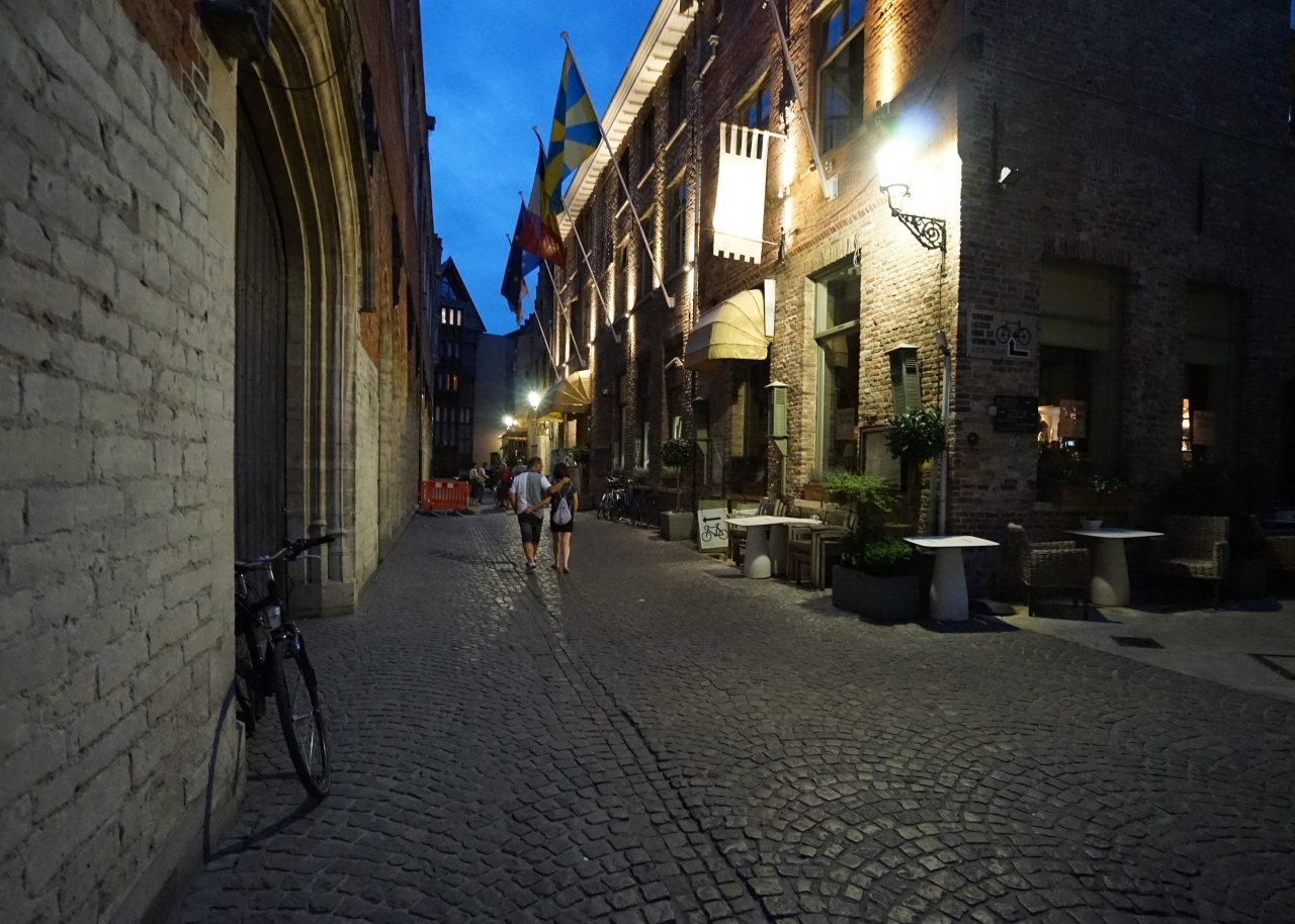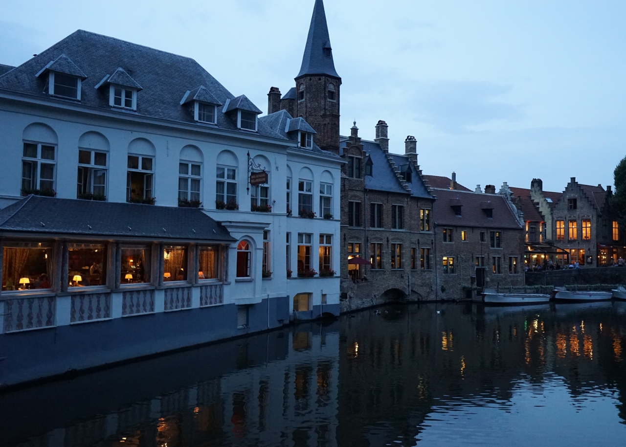 ツアーで世界遺産ブルージュの街に2泊しました。北のヴェニスとも呼ばれるブルージュは、ベルギーの海岸から10キロほど内陸にあり、世の古い街並みがそのままの姿で残っていて、石畳の路地が街を四角く刻み、水路が周囲を囲むように流れています。観光客も非常に多く絵になる街なのですが、人もいなくなり暗くなった街並みが本当に素敵です。絵本や映画の中世を歩いている雰囲気が味わえます。治安も良く深夜歩いても不安ありませんでした。