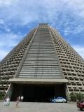 メトロ「カリオカ駅」から歩いてすぐの場所にあるピラミッドのような建物です。