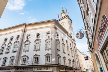 10日間のオーストリア横断旅行で、ザルツブルクに3泊した際にここを訪問しました。ザルツァッハ川左岸地域にあります。世界遺産のゲトライデ通り沿いです。時計塔のある歴史的建造物です。この辺りは賑わいがあります。