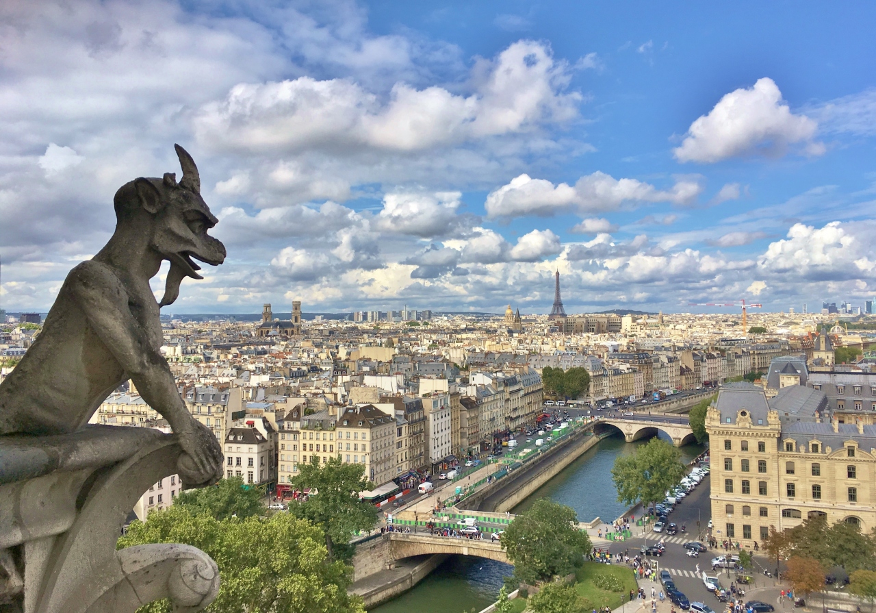 火災になる前にノートルダム大聖堂を訪れ、内部と塔に上りました。塔頂からみるパリの街並みは素晴らしく、1周して大聖堂の装飾を間近に見ることができました。2019年、再びパリに行く数週間前に火災が起き、尖塔部分が焼け落ちてしまいました。実際に行ってみると、周辺には近づけないようになっていて、物々しい雰囲気でした。そしてその周囲から多くの観光客が大聖堂を眺めていました。時間はかかると思いますが、また以前のように見学できる日が来てほしいです。