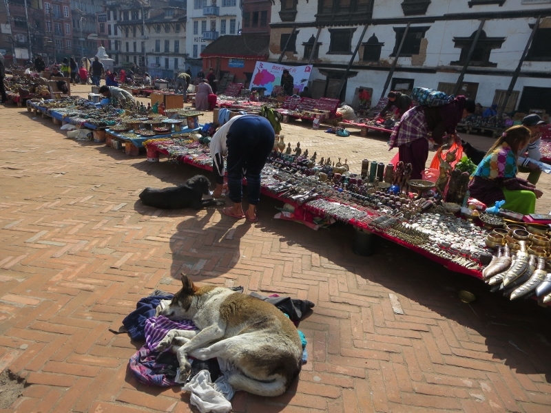 あまり客がいない時間だったのでのどかな感じでした。カトマンズでは犬が寝込んでいるのをよく見ましたが、ここでも犬がのんびりと寝ていてのどかな感じがしました。