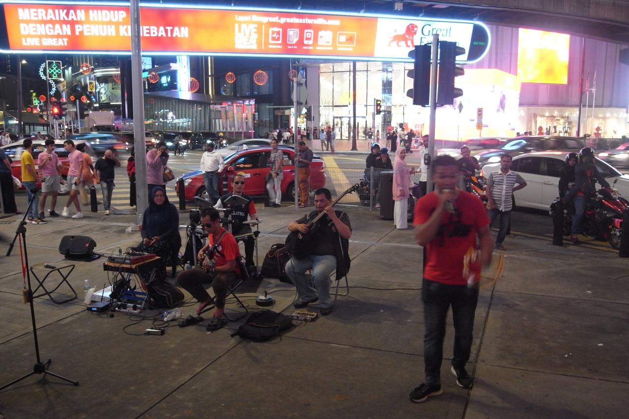 交差点の周辺では路上でバンド演奏を数組見かけました、