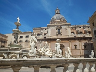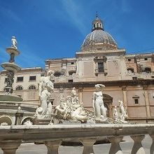 プレトーリア広場はクアットロ・カンティからすぐのところにあります。広場の中央には大理石の彫刻に囲まれたプレトーリア噴水があり、写真スポットになっています。
