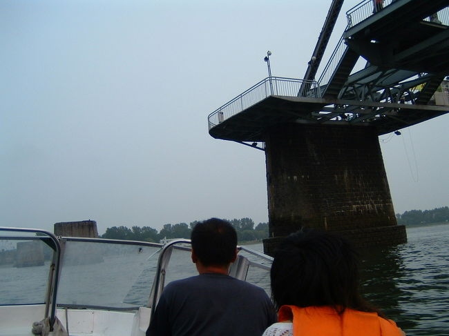 この下では、中国側から小さなモーターボートに乗り、朝鮮側に近づくという中国人相手のアトラクション(?)がございます。