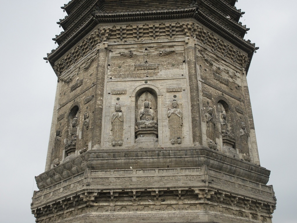 遼寧省の錦州を訪れた際、市内にある【広済寺】を見学しました。古塔公園として整備されていて、【全国重点文物保護単位】、つまり国宝に指定されています。私が訪れた時には、小雨が時折ぱらつく天気でしたが、私を含めて何組からの見学者が訪れていました。1057年の創建されたといわれる古刹だけあって、見ごたえのある垂木や肘木を特徴とする堂宇が何棟も残っていました。有料エリアの手前の公園の一角には、57mの高さを誇る古塔も残り、変化に富んだ景観が楽しめました。