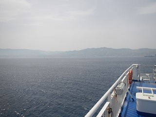 ナポリ・セントラル駅からインターシティに乗り、パレルモ・セントラル駅へ向かいました。イタリア半島本土からシチリア島に向けてメッシーナ海峡を渡る際は、車両を切り離して列車ごとフェリーに積み込みました。海上を移動中は列車を降りてフェリーの中で自由に過ごすことができます。珍しい経験をしてつかの間の船旅を楽しみました。