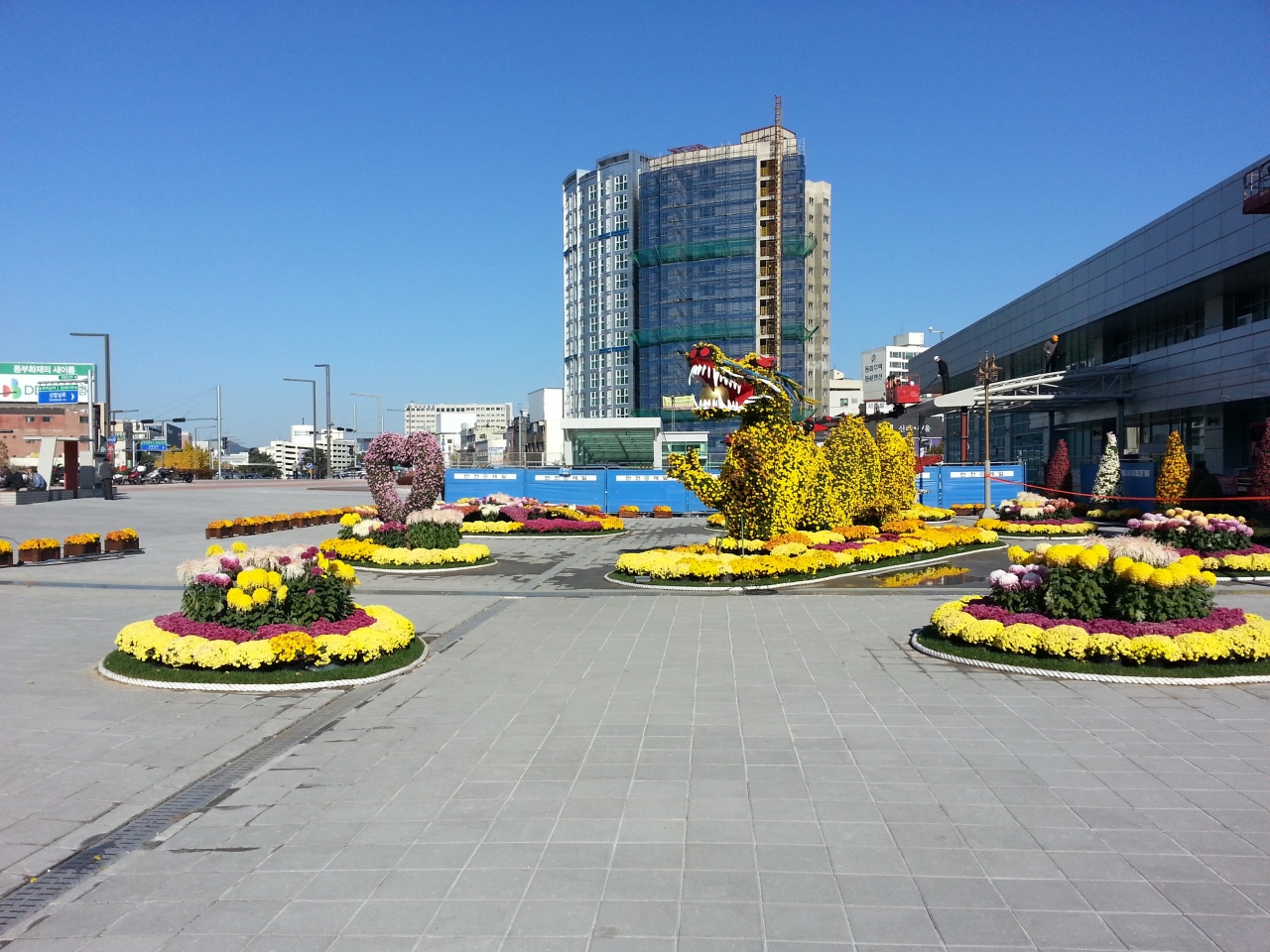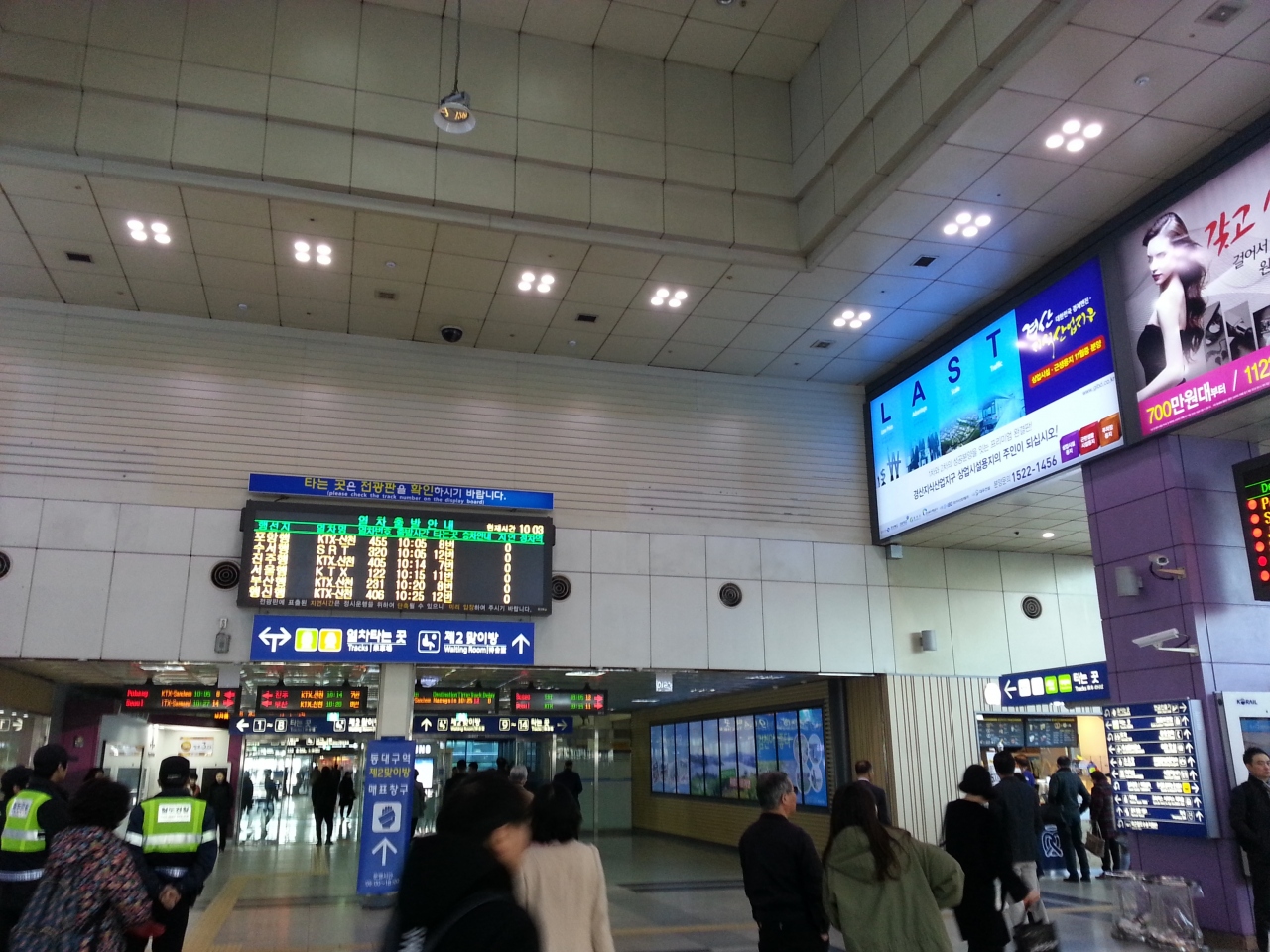 KTXの停車駅が、東大邱駅で、隣接して新世界百貨店もありました。日本人の観光客は見かけませんでしたが、現地の方で、混雑していました。インフォメーションは、駅を出て、新世界百貨店の向かいにありました。