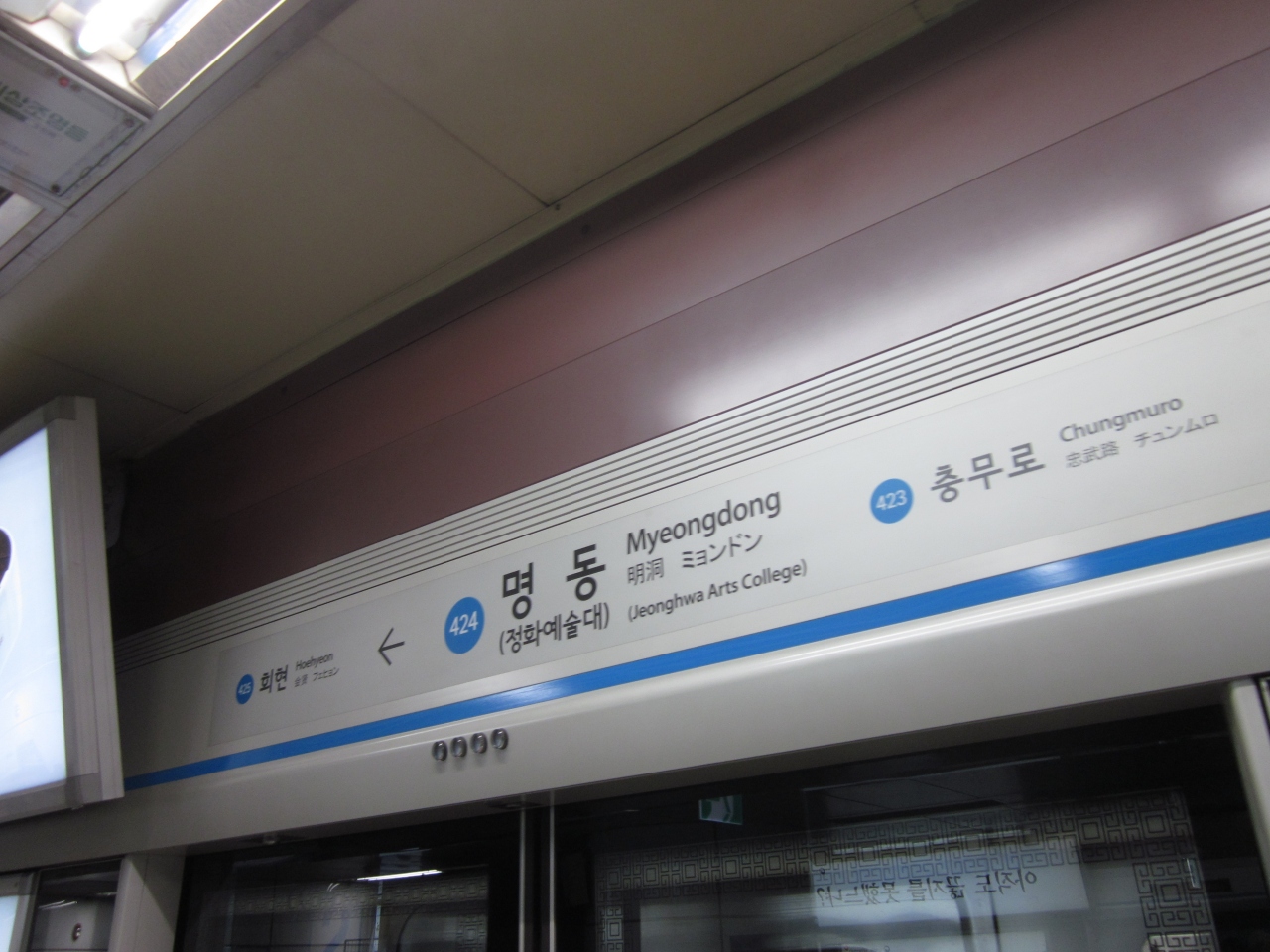 友達とソウルに来ていて、この日は明洞に買い物に来ました。明洞へは、地下鉄で移動するのが便利です。