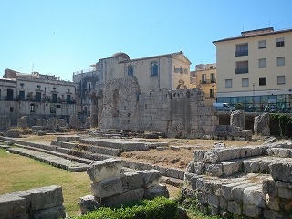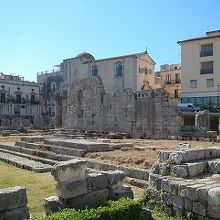 アポロ神殿はオルティジャ島の北部、本土側から橋を渡ってくるとすぐのところにあります。古代ギリシャ時代のドーリア式神殿の遺構で、シチリア最古のものだそうです。今は柱などの跡が残るばかりです。