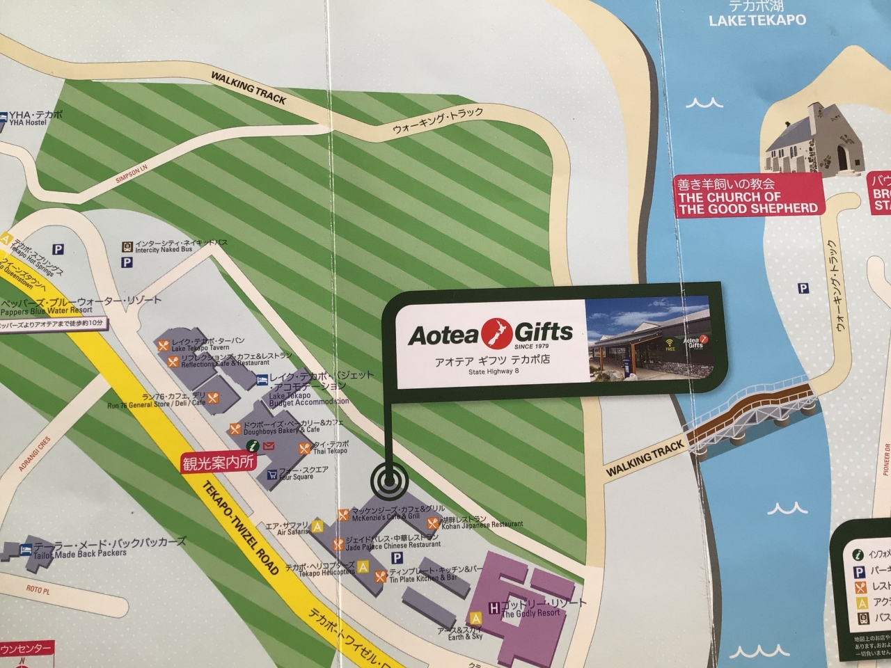 ホテルの隣には2日目のディナーの湖畔レストランやAotea土産店があった。