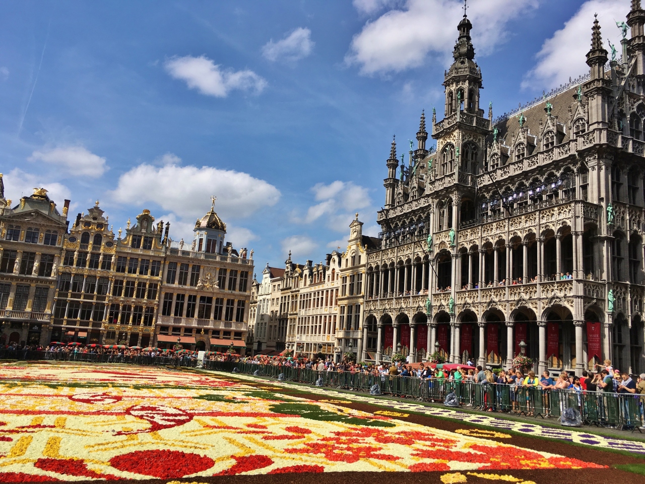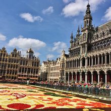 ブリュッセル中心部にあり世界文化遺産にも登録されている広場「グラン・プラス」で、2年に1度、8月15日前後の4日間のみ開催されるお花の祭典です。毎回テーマに沿って図柄が考案され、ベゴニアの花びらで描かれます。2016年は日本がテーマでした。広場一面が絨毯のようにカラフルな花びらで飾られ、本当に美しかったです。市庁舎や向かいの歴史博物館に入ると、上から全体を眺めることができ、お勧めです。また、夜には光と音楽のショーがあり、昼間とは違った幻想的な景色が広がります。もう一度見たくて2016年に続き、2018年も訪れました。テーマはメキシコ、華やかな赤が主体のデザインで、こちらも素晴らしかったです。