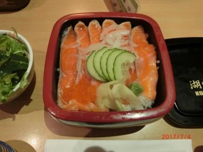 ゴッドリーホテルの隣の寿司屋でサーモン丼を食べた