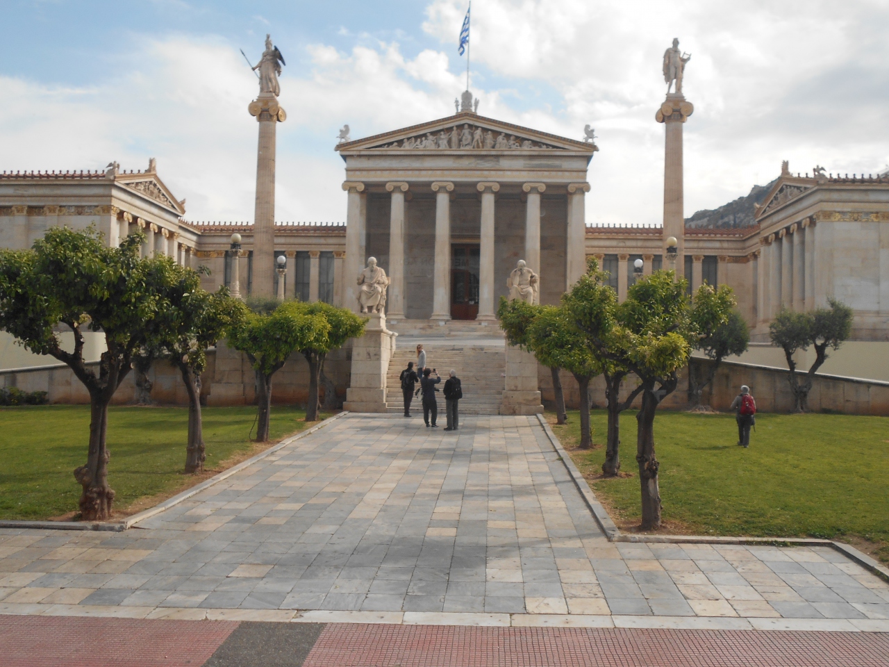 ハンセンによって設計された建物は19世紀に建てられましたが、古代のギリシアの神殿を彷彿させます。屋根のすぐ下の三角形の部分には女神アテナの誕生の様子が彫られ、イオニア式の柱の上にはアテナ神とアポロン神が入口にはプラトンとソクラテスの像が置かれています。